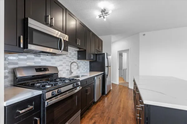 Beautiful two bedroom two bathroom corner unit located in Prairie District. Walls of windows where every window has a seat. Spacious living area with sliding glass doors leading to private balcony. Fully renovated in a modern aesthetic, all new lighting throughout, new kitchen cabinets and appliances, hardwood floors, two walk in closets and soaker tub with lake views! A commuter's dream. Steps to the Lakefront, Solider Field, all El-trains and all major interstate on ramps. City conveniences with all the modern luxuries. Building amenities include 24-hour door staff and on-site management, fitness center, sauna, social room, media room, dog run, and more. One garage space deeded separately.